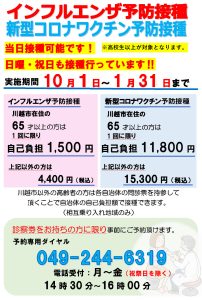 インフルエンザ予防接種・コロナワクチン接種について(10/1~)
